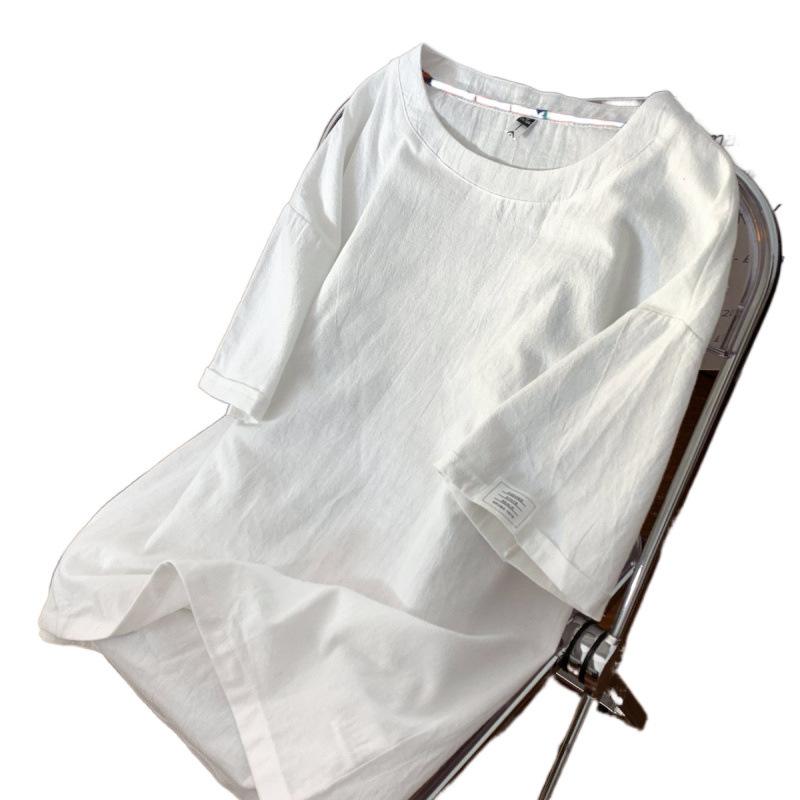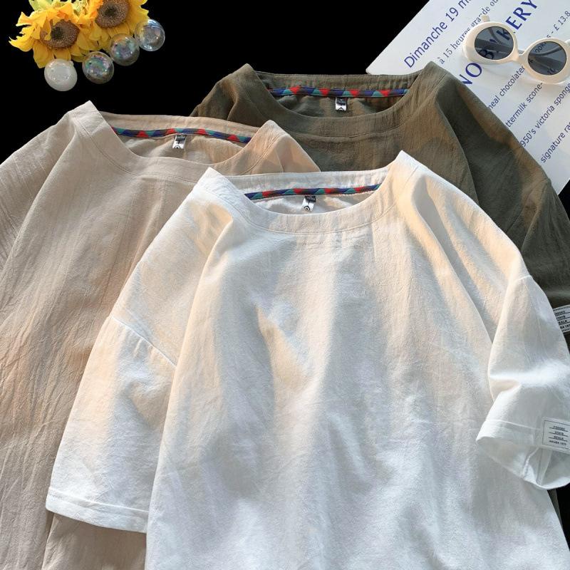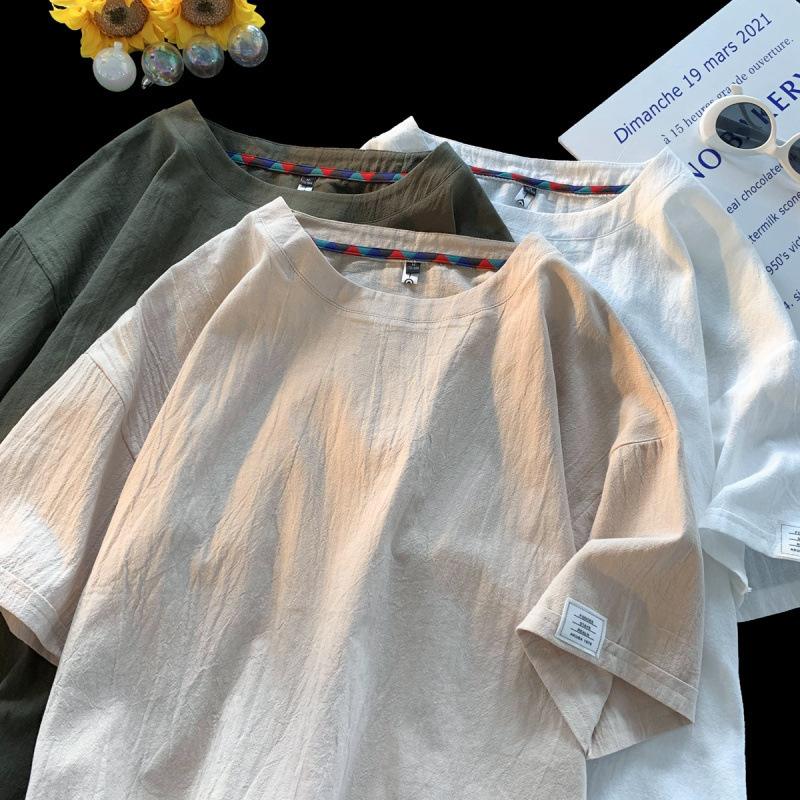 Linen short sleeve t-shirt men’s summer new trend cotton linen half-sleeved loose solid color base layer tide t-shirt top