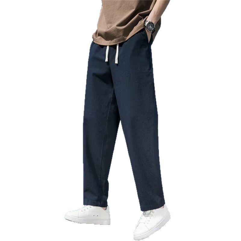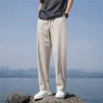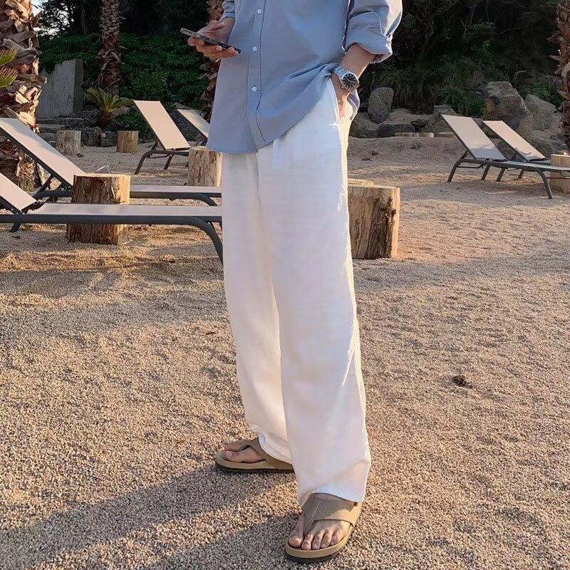 Linen trousers men’s 2025 new summer cotton and linen pants thin draped wide leg loose and versatile straight leg slacks