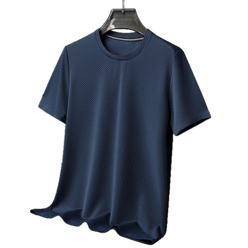 Summer Tide Man Bamboo Mesh Ice Silk T-Shirt Men’s Short Sleeve Round Neck New Half-Sleeved Men’s Trendy Brand Undershirt Men’s Top