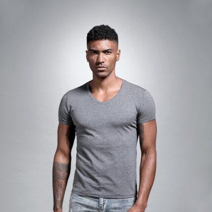 Wholesale summer solid color V-neck white t-shirt tight base shirt men’s short sleeve sweetheart neck white t inner layer slim bottom